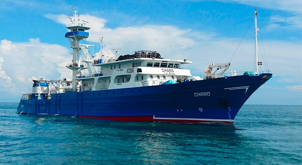 Il s’agit d’une méthode de pêche traditionnelle, pratiquée près de la côte. Depuis le bateau, des appâts sont jetés à la mer pour attirer les thons et, à l’aide d’eau pulvérisée par des tuyaux sous pression, des tourbillons sont créés pour attirer les poissons. Ensuite, les pêcheurs, équipés de cannes à pêche, lancent leurs lignes munies d’hameçons dans la mer et, profitant du mouvement frénétique de l’eau, attrapent les thons puis les hissent à bord, où ils sont rapidement stockés, en les gardant sous la glace, pour être congelés plus tard. Fin 2020, 21 % de nos thons étaient pêchés à la canne.