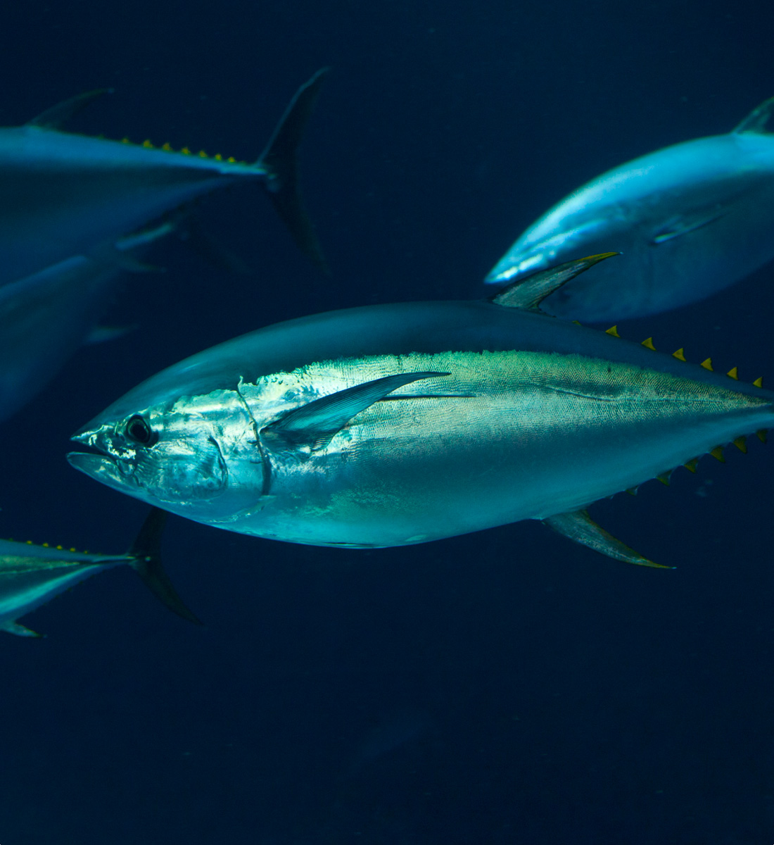 Très répandu dans les mers tropicales et subtropicales, le thon albacore (Thunnus albacares) est une espèce migratrice dotée d’une grande capacité de nage. Il se déplace en grands bancs et est capable de parcourir d’énormes distances, traversant parfois des océans entiers. Ses nageoires dorsales et ventrales d’une couleur jaune intense le distinguent des autres espèces de thon. Célèbre pour le goût délicat de sa chair tendre et rosée, il peut atteindre deux mètres de long et peser jusqu’à 200 kg.