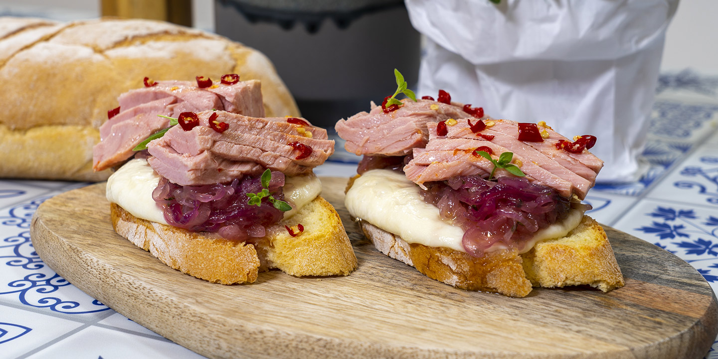 Bruschetta aux Filets de Thon et Piment, Oignons et à la Mozzarella